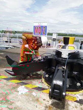 A (quick) release hook maintenance is a device used to secure and release and maintanence a liferaft or rescue boat from a ship in case of an emergency. Release hooks are designed with safety as a top priority. They are equipped with mechanisms to ensure that lifeboats and rescue boats are securely held in place while the ship is at sea.